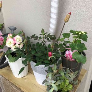 おはようございます☔️ 予報通りになりました。 昨日のフリマでゲットした4種 ミニバラ ゼラニウム 多肉寄せ植え 陶器の器とブリキの缶がついて 1200円 とってもお得でした😆
