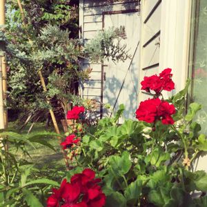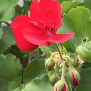 真っ赤なゼラニウムも日向で元気に咲い出しました❣️ 梅雨前のこの時期はゼラニウムには最高の季節です( ˶ˆ꒳ˆ˵ )
