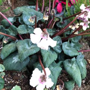 シクラメン・天使の羽♡ 仕事先の駅の植え込みにて。 昨日投稿したものと色違いですが こちらは下向き加減がかなり激しく お花の裏側しか写せませんでした😅 天使の羽という可愛い名前、 涼さんに教えて頂きました💕