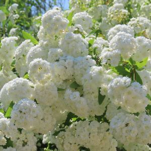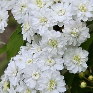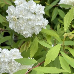 八重咲きのコデマリ(小手毬)がモリモリになって来ました❇️🤍💮💮💮🤍❇️ 固まって咲いていると、まるでブーケのようです💮💐💮🎀 去年も花後に結構剪定したのですが、大きな木になってしまいました😅🌳