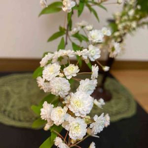 実家の小手毬と育てた花でいけてみました。 白と緑で初夏の雰囲気になりました😄 小手毬は八重咲です💕