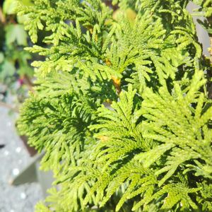 葉っぱシリーズ🌿 黄金色の時期は過ぎたけど、まだまだ明るい☝️ Thuja occidentalis 'EuropeGold' ニオイヒバの部類 柑橘系の香りですね🤔