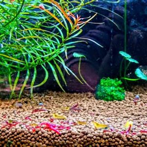 ラピュタ水槽、 数匹だった黄色いエビさんがいつの間にか恋の季節でこんなに増えてくれました💕 昔チャレンジした時は、全く上手くいかなかったのに、なんでだろう。笑