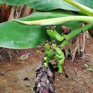 最初の写真で 何の果物か解りますか? いつもの小道に成ってるバナナ🍌 今年も実ってる〜 見るだけで、どちらさんのバナナの木か知りません 空き家なので そのままで食するのは 苦手ですが、スムージーにするのと食べられるんです🍌