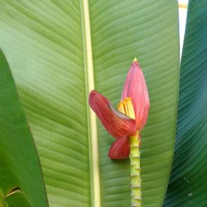 おはようございます。💮 昨日、カナイさんのpicで 芭蕉を見て、勉強になりました。 近所の花を見て、バナナと良く 似ているので、バナナだと思っていました。🍌 上は、新宿御苑の温室のバナナの花、下は、埼玉県春日部の芭蕉の花です。 似てますね、見分け方は、葉の裏が薄い緑色なら、芭蕉 白っぽい粉がふいていれば、バナナだそうです。🌿🎶