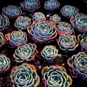 2021/12/02 七福神。 今日は姫ちゃんじゃない方で😬 うちでは剛健種扱いの七福神。(外野で半放置) 寒さにも強いから冬はハウスどころか 軒下にも入れて貰えなかった子達😆 去年は根なし養生でビニールトンネルで冬越ししたら 葉先の霜焼けも無くてまぁ綺麗💕←当たり前だっ😅 味を占めて今年もトンネルで冬越し←気づくの遅っ🤣 紅葉と締まり具合はイマイチだけど、 ビニールかけてあるから眺めてニマニマし辛いけど 春になったら爆発的に可愛くなる!ハズ😍