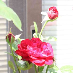 気温31℃でも カッコよく咲いてる 情熱の赤いバラ🌹✨ でも やっぱり暑そう🥵💦 🏷金曜日の蕾たち 🏷金曜ローズショー 参加させていただきます🙏