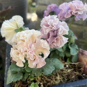 待ちに待ったパンジー✾ローヴドゥアントワネットロココさん グランビオラのグランブルーと青魔道士も可愛い❤ 今年はガーデンシクラメン雪うさぎとジュビリーの寄せ植えも作りました
