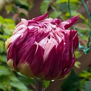 ダリアの蕾 大輪のダリアです。 2本の蕾が出ていたのですが、強い風で鉢が倒れ、1本折れてしまいました。 まだ下から新しい蕾が出てくるようですが、残念です。