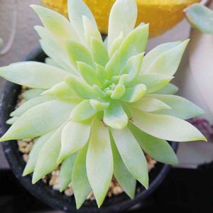 【 ファンファーレ 】 ひょろひょろしてたからすぐカットして仕立て直ししてたのが約10ヵ月前。 結局、ひょろひょろはそのままだったけど、少しは成長したみたい。 真ん中薄い黄緑でキレイになってきたなーって思ってたら焼けちゃった?💦
