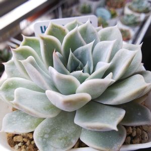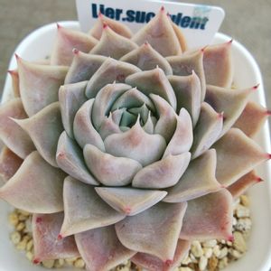 エケベリア(Echeveria) “リラシナ×ヒアリナ“ E. lilacina×hyalina お気に入りの交配です😊 紫ぽくなってきました。いい感じです👍 サボテン相談室さんの苗です。