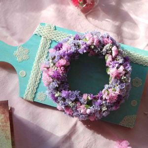 カッティングボードにドライフラワーアレンジ 初夏をイメージして明るい色で✨