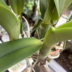 🍀カトレア🍀 配置換えをしてて見っけた❣️ ふたつのバルブにシースが😆♬♬ タグがとんでるから咲かなきゃ名前がわからない😅