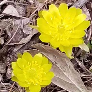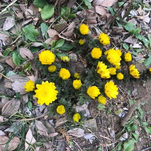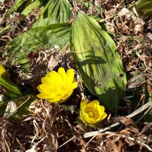 福寿草✨✨ 群生しているのを初めて見ました でも地面からお花!のイメージだったけどふわふわの葉っぱの上に咲いていました。 お日様が当たってキラキラしています✨ 3/2 名古屋市農業センター