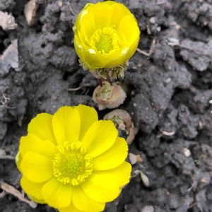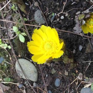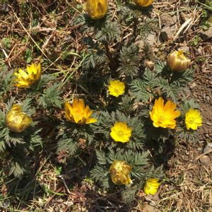 福寿草 (元日草、朔日草) よそ様の畑ですがご厚意で毎年お邪魔させて頂いてます。 改めて調べてみると毒草でフキノトウやヨモギと誤食される事故があるそうです😫 見慣れた方には何て事ない花ですが種から育てると花が咲くまで4年から7年かかるそうです。株分けも出来るようですが😁 今年はフキタンポポをお迎えしたので上手く育てばいずれ挑戦したい山野草の一つです😄💕