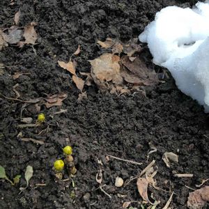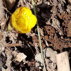 我が家🏡 最初の庭の花 西日が当たる場所に 開花しました😂 花畑はまだまだ 雪の下 次が待ちどうしいです