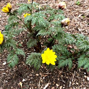 福寿草。庭に咲きました。 GSで調べて、毒があるって初めて知りました。。。花がない内に、ヨモギと間違えて食べちゃう人がいるそう。 以外と、毒のある植物って、身近にたくさんあるのね。きをつけたいです。