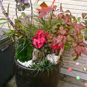 昨年の夏に作った鉢植えタワーです。自宅の鉢が余っていたので訪問先でタワーを見かけ感動して作ってみました。初雪かずら、唐辛子、ワイヤープランツ、春蘭など植えてます。寒い時期はそのままにしています。我が家は春蘭が多くあります。