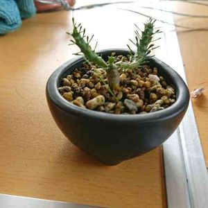 ユーフォルビア(多分) 正体不明 3本目がのびはじめた! ✨🤓✨ 株元の部分も少し太くなってきたかな ✨🤩✨ 何か…別の葉が出てきてる… みどりのまとめ更新しました。