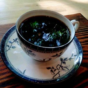 番外編です。💦💦 今日午後3時の珈琲ブレイクです。 カップの中に周りの森の緑が映えています。 🌿🌱🌼💐🏵️🌸🌿🌱🌼💐🏵️🌸🌿🌱