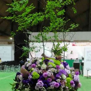 2019信州花フェスタ会場にて📷✨ なかなかの存在感ある鉢が😲 これは鉢植えの周りにオアシスを敷き詰めて 切り花を生けてるんでしょうか(~。~;)? ん…。。
