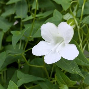 つる植物の アサリナ雪すだれ🌿.∘ グリーンアイスの鉢から零れて咲いています。 今年こそ抜かないと グリーンアイスの枝が負けて、 お花も小さめです😢