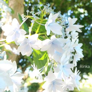 ✨光の花降る時✨ 梅雨の晴れ間の空が 真花の光になり 淡い空色の装飾花を 真っ白に輝かせていました✨