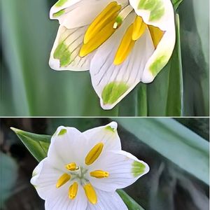 ❋今日のお花 スノーフレーク❋ 我が家のスノーフレークです、 咲き初めは上向きに咲いていて撮りやすかったです 今沢山咲いてきてます🤍💚