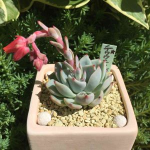 こんにちは(o^―^)ノ🌈 朝のタニパト時、風に煽られたアデニウムの花が痛み始めていたので、受粉するとしないとに関わらず花弁を割いて雄しべと雌しべを観察していた時、蜜のようなものが染み出してきたので何の気なしに舐めてみたら クッッッッッソ苦っっっ(유Д유〣)‼️ リアルで「おげげげげ❗️」ってなりました(;≧д≦)(笑) 何なんだよこれ何だよー、蜜じゃないのかよー😨💦 水やりホースで口をゆすごうとしたら、なっ…無い❗️ 口内は非常事態宣言発令中だと言うのにホースはどこへ行ったのか⁉️ 旦那が子供用プールに注いでましたー(笑) 貸して貸してと大騒ぎ💦 子供がヤメテ❗️と阻止をする。 いやいや口が、苦いんだ(;´༎ຶД༎ຶ`) てか誰も「これがアデニウムの蜜だよ🍯」と言ったわけでもなく完全に自爆なのですが、なんかやり場のない怒りが…(。˘-_-。) もしこの汁に毒性があり、あきが逝去していたら笑ってやってくださいネ(笑) 前置きが長くなりましたが、昼前picは 「待ち遠しや」 しっとり美人のリラシナ×チワワエンシスさんです。 暑さに耐えながらもほんのりピンクで可愛いなぁ〜😍💕 秋が待ち遠しいといつも思いますがいざ秋が来ると、今年も夏はあっという間だったな、などと惜しい気持ちになるのですよね(๑•́ω•̀) ちなみに私の実生したリラシナ×チワワエンシスは全滅しました(笑) まあまた、お花が咲いたらがんばります(๓˘▽˘๓)🎶