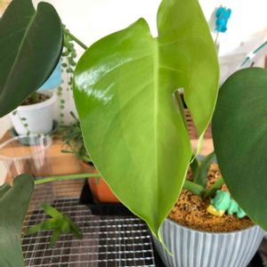 おはようございます。 おっ! 昨年探しまわって、やっと手に入れたDAISO産の軟弱モンステラに。 やっとやっと、切れ目が入った葉が出ました(((o(*゚▽゚*)o)))♡ あまり動きもなく、出てくる葉は普通で、これって本当にモンステラ?と疑惑を持ち続けた一年。植物って不思議🪴。