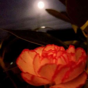 今夜は満月♡ ストロベリームーンというそうです🤗✨ 言われてみれば、少し赤っぽい♪ お花はカーネーション、葉っぱはシキミです。 仏壇の花器に入りきらなかったやつです🤭