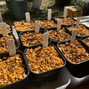 ぽかぽか(∗ˊ꒵ˋ∗) ミニパキポたちが少しずつお目覚めです。 でっかちゃんはまだお眠。。。 花芽は1個も確認出来ません😭 (」゚д゚)」パキポの花が見たーい!