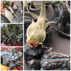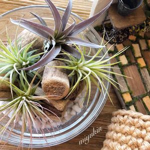 エアプランツ 先日久しぶりに ダイソーから1つ 連れ帰ったのでとりあえず記録 大きさの違いにビックリしちゃうね。 同じダイソー出身の先輩達を見習って 大きく育ってね。