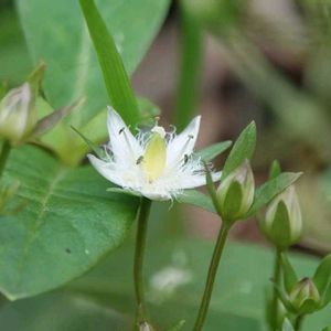 イヌセンブリ(犬千振) リンドウ科 センブリ属 低湿地に生える多年草又は越年草 絶滅危惧2類 分布地 本州、四国、九州、中国、朝鮮 名前の由来 苦味健胃薬に使われたセンブリに似るが、苦味が少なく薬効も無いので、名前にイヌがついた 昔は役に立たないものは名前にイヌがついた様だ。とは言え、今では犬は人の癒しになるし、番犬にもなるのに納得いかない話です 草丈10〜30cm、花の大きさ約1.5cmで、葉は倒針形、花弁には紫色の筋が入っています 真ん中にはもしゃもしゃした毛があり、その下には蜜腺溝がある様です 周りの草に押し倒されそうな感じで咲いています まだ咲き始めで、うっすらとした紫褐色の蕾がこれから花が沢山開きそうです 生えている場所にはローブが張られていて、沢山あるのかと思いましたが、数少ない事に驚きでした 年々数が減少との事です この☆お犬様☆は貴重な花ですね