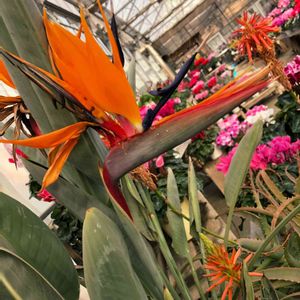ヘリコニア ロストラータ もしくはロストラタ オオムバナ科オオムバナ属 ショウガ目 旧バショウ科 ヘリコニア属 アメリカでは別名ロブスターのハサミと呼ばれている🦀 その派手なハサミは花じゃなくてホウで、ホウの中に花が隠れて咲いている。
