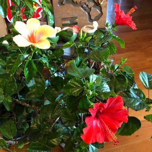 きょうのハイビスカス 赤に加えてちっちゃいクリーム色も元気です。部屋に入れたらさらに調子良くなっちゃったかもです(๑′ᴗ‵๑) 花芽も出てくるので、剪定のタイミングが分からんです ……… #きょうのハイビスカス #aloha #alohanob #hawaii #gardening #マクロ #ハイビスカス