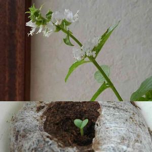 4月に購入して、色々活躍してくれたバジル苗の指し芽が、8月の台風20号で折れてしまって、花が咲きました。 根も出ているけど今さら植えるのも・・・って、水に差したままです💦 本体も鉢で元気に花咲かせています。 下は、台風の前に収穫した種を5日くらいに撒いたら芽が出た写真❤️ 成長したら、秋の料理に活躍してね。