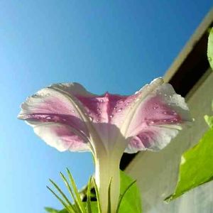 平成30年7月豪雨で覚醒(発芽)した朝顔。 昨年娘が玄関前で、収穫した朝顔の種をこぼしてしまいました。 回収しきれずにマットの下に転がりこんだ種がたっぷりの雨で発芽して、隙間から顔出していたの救出して、同じく豪雨で根元で折れた朝顔の鉢に↑直しました。 またまた白ですがたくさん蕾つけています。 一週間前もってから咲いているのですがなかなかタイミングが合わなくて💦やっと撮れました😆