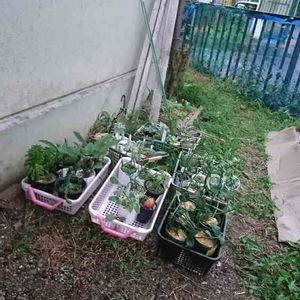 おはようございます🎶 土ビショビショ💦😱💦 切って挿してを繰り返した姫秋麗、オーロラ、虹の玉✨ 100均DIY鉢でモリモリに💕 どうか1日蒸れずに過ごしてちょーだい😂 せめて風よ吹けぇ〜💨💨💨