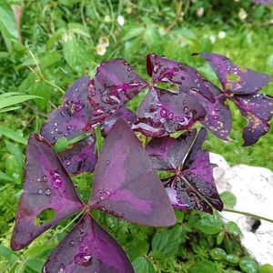 オキザリス! 葉っぱの色と形が可愛いくて購入したら、あちこちから毎年顔を出してます😅今、雨が酷くて仕事終わって車まで乗る時もびしょびしょでした😭被害が出ないことを祈ります‼️