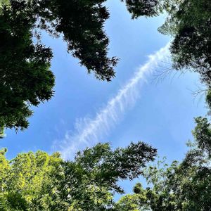 ☁今日の朝🌄と雲☁ この雲?うろこ雲かな? 朝焼けで、照明ステージの光のように、とても、奇麗に輝いています!その右上⤴に今、動きながら、出来上がっている飛行機雲ができつつある風景! 綺麗です! 2022.1.9.📸pic