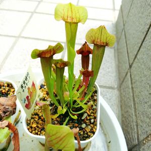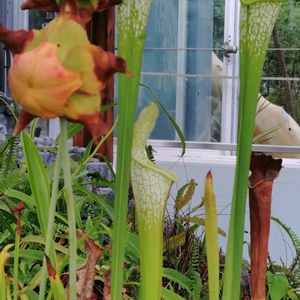 サラセニアたちも今年は遅いです。 1枚目 フラバ 2枚目 ファーンハミー 3枚目 ジュディスヒンドル 4枚目 フィラデルフィア ガッツリ植え替えてないのがいけないんかな?