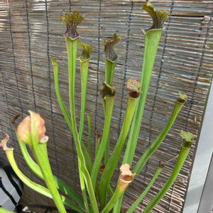 サラセニア♡サラセニア科🇺🇸🇨🇦 食虫植物です🪰 和名:瓶子草(ヘイシソウ) 見た目が、ちょっと驚きました😅 レウコフィラレッドとパープレアの掛け合わせと書いていました♪
