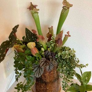 サラセニアの寄せ植えを作りました。 小さい虫が家の中をブンブン飛んでいて、食虫植物デビューしました。虫がいなくなったような気がします。