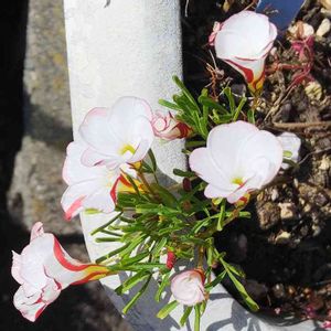 以前、別の植物を購入した際にオマケで3つ(だったかな?)いただいたオキザリスパーシーカラーの球根を庭のプランターの右端に植えてみたのですが、何故かプランターの左端から出てきましたw(゜o゜)w 雨などの影響で、球根がプランター内を移動したのかな?