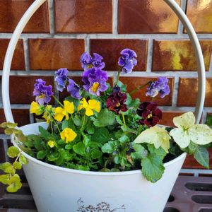 寒いけど 天気が良いので 寄せ植え🤗☀️ ・ビオラ3株 ・ワイルドストロベリー🍓 ・ヘデラ 白雪姫 ・ロータス プリムストーン ・サザンクロス フイリーナ クイーン