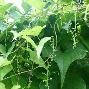 オニドコロの雄花。 雨が降ってない🤗 梅雨明け❔ あの雨のおかげか野生の植物がみんな、元気。 ヤマノイモ?どっち?オニドコロだー。