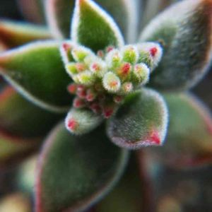 もけもけな エケベリア・ハムシーさんに蕾ちゃんが付きました😻❤️🤍💚 良く魅ると 蕾ちゃんも もけさんなのね👀🧶