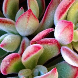 もけもけが魅力 エケベリア・ハムシーさん😻💗💜🤍💛 中心部にいらっしゃるのは けろけろケロッピかな🐸❓