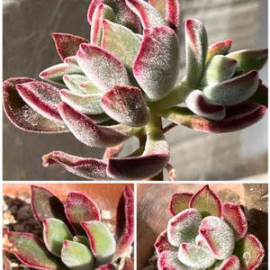 ⬅️11月の初め頃、初めてカクトロコさんからチワワエンシスちゃんをお迎えし、なんてかわいいんだろうとウキウキ❤️ その翌日、強い日差しで焦がして涙ちょちょぎれた😭😭 なんとかそのまんま冬越しして、3月に胴切りしたら、根っこ腐ってた😱たぶん、片側をがっつり焦がしたのが原因だったのかと。よくぞ、冬をお外で越してくれた😭 からの、初めてのフェス巻による発根方法を試し、見事発根‼️フェス巻いいかも😍 縁側の日当たり抜群の室内に置いておいたよ😙 ➡️最近鉢に植えたよ♡鉢がとっても可愛いんだけど、土が乾きにくそうな形のため、鹿沼土だけにしてみた‼️肥料もなし!大きくならなくてもいいから、ただ生きていてくれれば🙏✨✨お水吸ったら葉っぱにハリがでるかな?みどりんに戻るのかな? HCで安くGETした大好きなハムシーちゃんと一緒に植えたよ🥰ダイソーからお迎えしたハムシーちゃんは美しい赤色なんだけど、最近お迎えしたこのハムシーちゃんは赤くはならん😗赤色って紅葉🍁? ところで、、、ハムシーって勝手にカランコエだと思ってた😀モケモケがかわいいなぁって❤️うさ耳ちゃん達のお仲間かと😀😀 エケベリアなの⁉️えぇーー😳 焦げるわ、腐るわ、 ぎゃーーーーーの連続だけど、なんとか生きておる🤩🤩 こうやって見比べると、みどりんからブルーに変わってるのがよくわかる😊別人🤭 写真で見るまで気づかなかったよ🤔 チワワちゃんがDAISOにあるのが今でも信じられない🤔田舎のDAISOには入荷されん!カクトロコさんにも何回か行ってるけど、その時以来見たことない‼️私にとってたった一つの大切な大切なチワワちゃん🥺 どうか、無事に夏越しできますように🙏🙏🙏